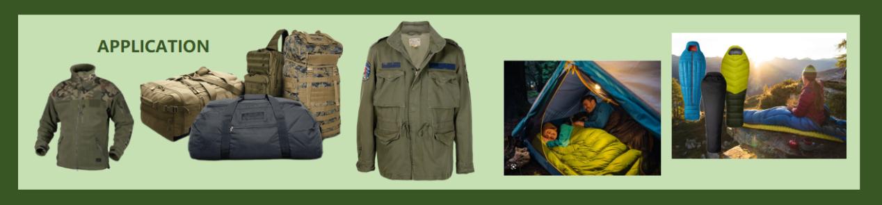 Can withstand more weight, more robust and durable, in military backpacks, clothes, military boots, sleeping bags and other need high quality products, or any brands need high quality products.